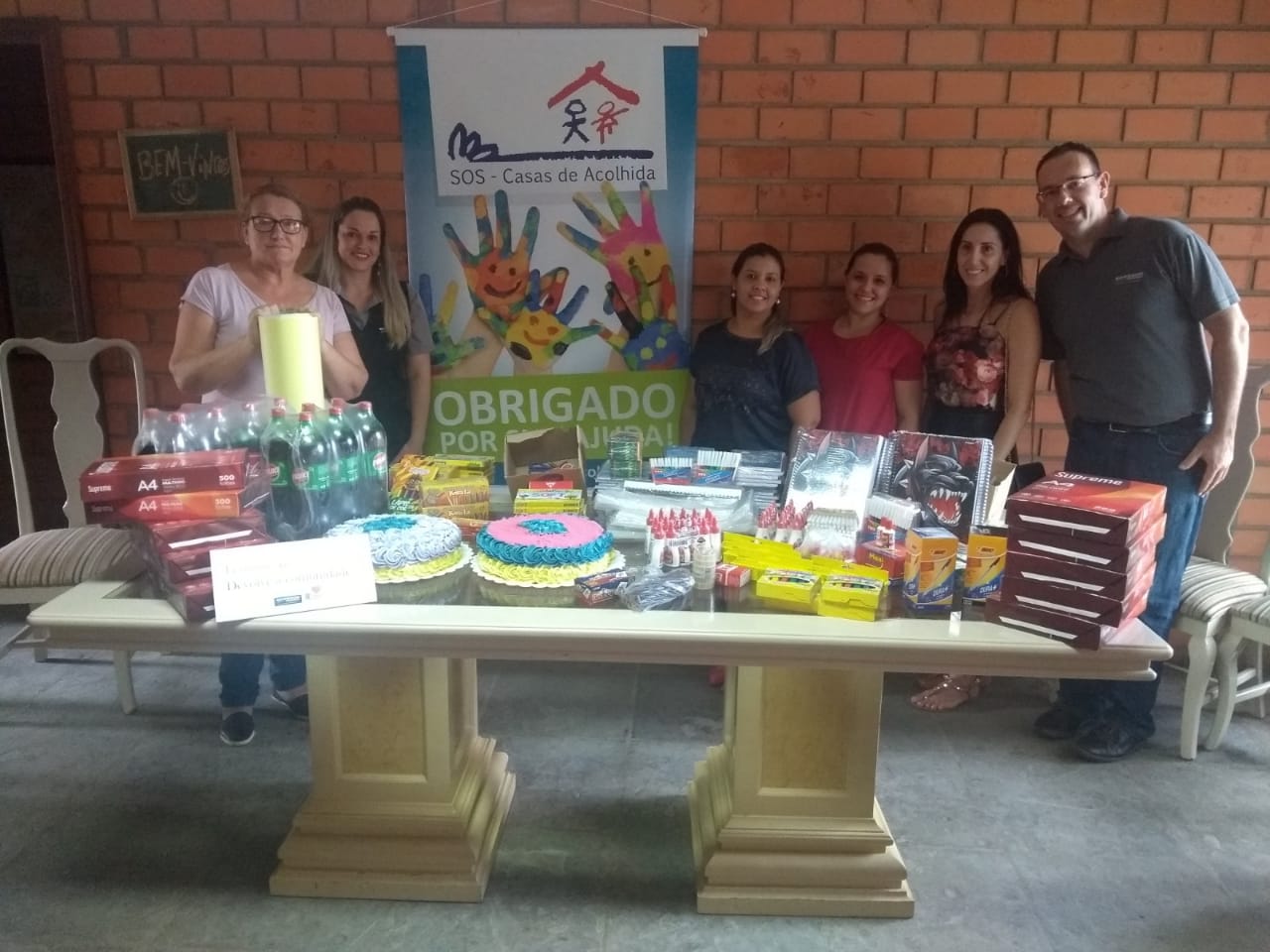 Muito obrigada pelo apoio de grande valor, pois nossas crianças e adolescentes estão iniciando o ano letivo. Além dos materiais citados, foram doados dois bolos e refrigerantes para um lanche especial.